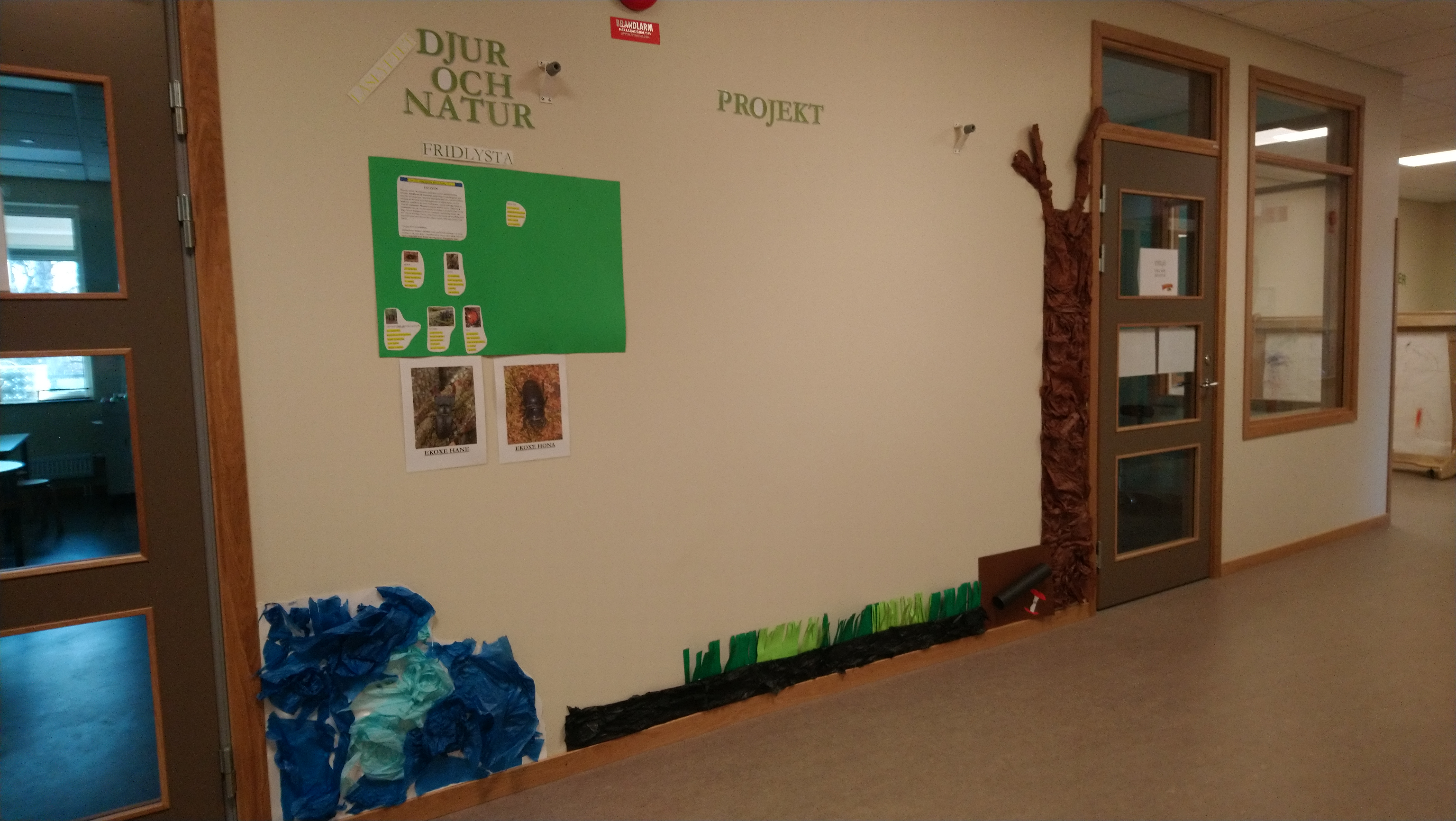 Vi har just nu skapande av projektvägg samtidigt som vi lär oss om masken. Ett träd, gräsmatta, jord och en liten damm har vi fått upp idag! Tanken är att insekter, djur, växter ska få flytta upp på väggen, dokumentationen har flyttat till väggen mittemot.Innan lunch var det även många som byggde en koja inne på stubben. Kojjan blev liten så vi fick göra en ännu större med filtar! Det kom önskemål att äta mellanmål i kojan och självklart ordnade vi det :) Smörgås och dryck intogs i eller vid kojan!